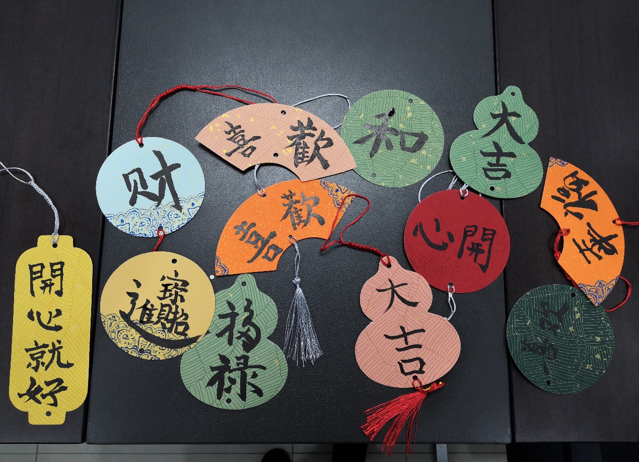 姬喻波老师是学校通识课《中国书法鉴赏与实践》的任课教师,他不仅深入浅出地讲解了书法艺术的魅力和深意,还现场指导和展示了书法创作过程。通过姬老师的指导,“欢喜”“幸福”“开心”“平安喜乐”“立德树人”“招财进宝”等或寓意美好或充满智慧的字眼,在大家笔下跃然纸上。教职工们在书法的创作中缓解工作压力,提高了认识美、发现美、创造美的能力。同时也感受到了作为人民教师在传承和弘扬中华优秀传统文化中的责任和使命。