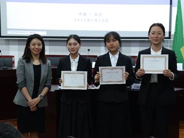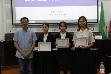 下午16时,大会闭幕式暨颁奖典礼在歌乐楼A2-1召开,评委们从参会代表的表现、会议议程、会议组织等方面对本次会议进行了全方位的点评。龙兴春老师对全体代表表示了肯定和鼓励,并从参会的细节方面提出了建议;孟利君老师从会议议程方面进行了点评,并对会议内容进行了指导;游涵老师和郭兵云老师从会议组织方面肯定了本次会议,并表示期待下一次的模拟金砖国家会议。随后,评委老师们为获奖选手颁奖并合影留念。