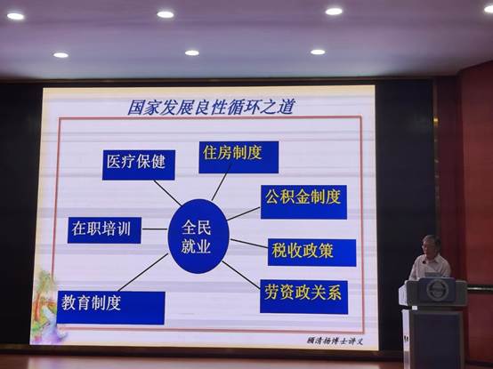 首先,顾教授以国家发展为切入点,讲述了与人民生活息息相关的住房制度、税收政策、公积金制度等如何促进国家发展的良性循环。