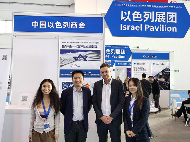 会议期间,恰逢中国国际展览中心举行2019世界智能网联汽车大会,作为创新国度的以色列积极参与,开展了“驶向未来——以色列企业对接活动”,而负责此次以色列展团组织工作的即为两位川外K1体育毕业生。陈老师看望了她们并与中国以色列商会总经理Ariel Briskin进行了交流,介绍了川外以色列研究中心的情况,并建议商会组织以色列企业参加2020年重庆智博会。
