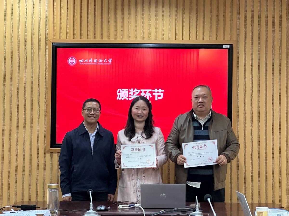 授课展示结束后,评委团从AI应用合理性、教学设计创新性、教学效果呈现度等维度进行专业点评。其中,郭兵云重点强调:“做PPT要注意细节美观,这不仅是视觉呈现的加分项,更能体现创作者的严谨态度与对作品的重视程度,直接影响观众的接收体验与作品核心信息的传递效果。” 周思邑以“曾参赛选手”与“现评委”的双重身份,结合自身过往参赛经历,为登台展示的四位老师带来极具针对性的指导,以实战经验点亮AI教学创新之路。评委团既肯定了参赛教师的亮点与突破,也提出了针对性的优化建议。随后,大赛进入颁奖环节,马驭骅书记与宋国华经理为获奖教师颁发荣誉,以表彰其在教学创新中的突出表现。