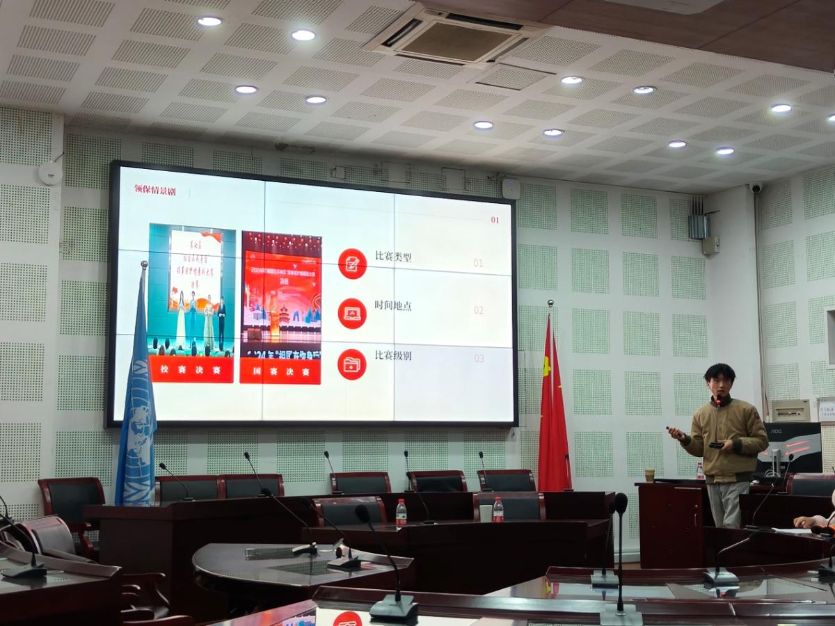 2024年12月12日中午,“‘祖国在我身后’领事保护情景剧大赛宣讲会”于西区歌乐楼A2-1模拟联合国实验室成功举办。K1体育陈丽娅老师给2024级本科生进行宣讲,宣讲会还邀请了今年在国家级领事保护情景剧大赛中荣获二等奖的作品《逃出无界》的导演、男女主角——吴文韬、刘洋、郭津毓同学到现场向大家分享参赛经历。