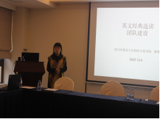 下午会议由熊德米教授主持。刘玉梅教授以“川外非通用语双复合人才培养模式探索”为题,从超学科视角阐释了非通用语双复合人才建设的必要性,并介绍了该团队项目建设的情况。黄慧教授就“英文经典选读团队建设”为题,主要汇报了团队建设历程、团队理念、团队交流、团队成果、课程创新与课程成果,分享了首批国家金课建设的经验,以期为非通用语课程建设提供借鉴。魏涛教授以“重庆市在线课程建设经验分享”为题,介绍了时政英语视听说在线课程的建设目标、团队情况、课程结构、课程内容、课程特色等,并以大量案例说明视听说课程建设的具体操作思路。与会代表就相关话题展开热烈讨论,到会师生纷纷表示,今天的会议很有启发,受益匪浅。