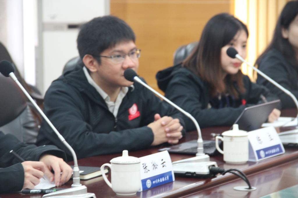 座谈第二阶段,调研队伍与公司师生代表进行了深入而热烈的交流,陈立提出,川外既要推动建设国际组织人才推送渠道,要做到国际组织“有人在”,保证信息对称,也应该让员工利用好国内现有的国际组织办事处的实习工作,积累实际经验,从而做到得心应手;更要加强教师队伍的建设,驻外老师先行,以此为突破口开展国际组织人才培养工作。
