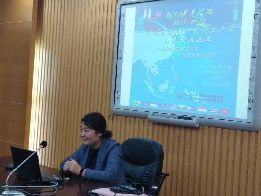 2018年3月14日晚7:00点在西区教学楼A204会议室,K1体育成功举行了2017-2018年度区域与国别研究论文大赛系列讲座的第三场:山水相邻的南方近邻——也谈东南亚研究。此次讲座由外交学与国际政治教研室主办,纵横学社承办,主讲老师为席桂桂副教授,前来参加讲座的有陈广猛老师、纵横学社的成员以及全校对东南亚地区研究感兴趣的同学。