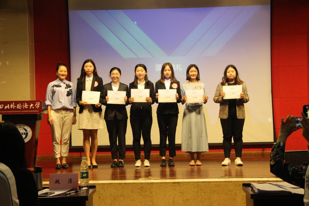 本次比赛一共分为九个小组,各个小组以团队的方式分别针对中美贸易战、俄罗斯会晤外交、韩朝会晤、板门店宣言、中印首脑会晤、中多建交、战乱纷争、叙利亚问题、伊朗核问题、 Facebook泄密事件几个主题进行新闻播报。在这次比赛中各组成员以自信的步伐、稳健的台风为我们展现了主播与记者应有的风采,第五小组以独特的印度服饰记者播报新闻的创意将比赛推向了高潮,台下观众热情高涨。经过九场激烈的角逐,比赛接近尾声,接下来的评委点评,梁立老师和姚兰老师对本次比赛作了一个非常详尽的点评,老师们首先对参赛人员的表现表示肯定,但也对一些小组的主题、成员表现、发音、还有台风等方面提出了一些建议。