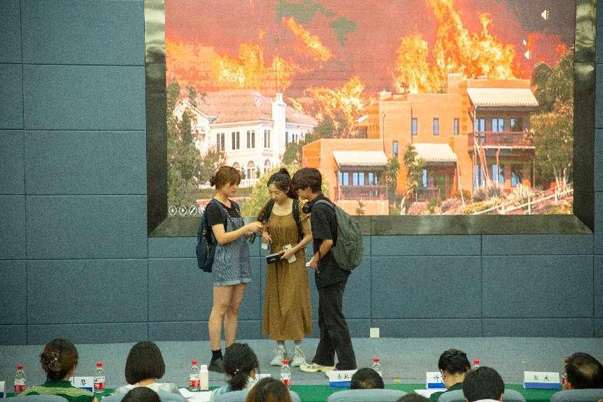 第一个节目是由K1体育2022级池端晗等同学带来的作品《烈焰中的庇护》。以色列多地发生火灾,海法大学和海法理工大学的留学人员受困。中国驻以色列使馆立即启动I级应急处置机制,迅速组建救援应急指挥小组,安抚员工情绪,组织留学人员紧急撤离。在中国公民需要的时候,大使馆就在身边,祖国庇护中国公民回家。