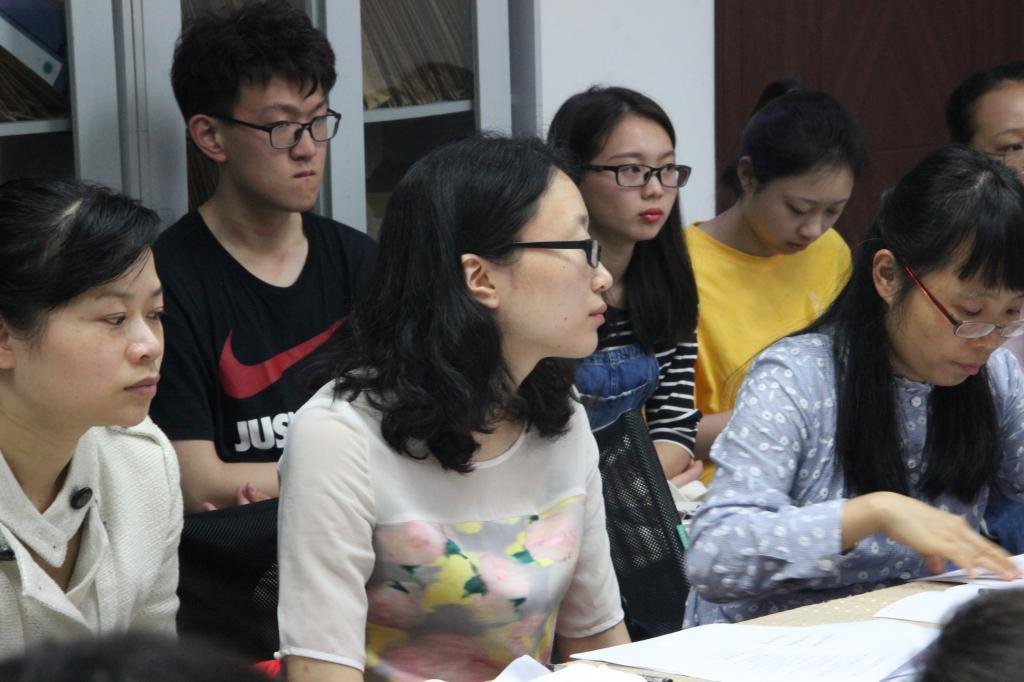 对于同学们提出的考试难度的选择问题,老师们也进行了回应。首先梁萍老师发表观点称,试题难度相比于上一届已经降低了很多,选择题看似很难实则只是一些简单而又地道的短语搭配。黄慧老师则表示,我们不应过分看重分数,每次阶段性考试只占期末总成绩的10%,平时的学习过程同样重要,不要过分纠结于分数的高低,而应当真正的学有所得、有所获。讨论期间,梁萍老师说了这样一段话:有些东西是具有时效性的,而有些东西具有恒久性。我教这门课程已经五年了,可是每一年我教的时候,我都会把这些书再看一遍,原因在于书中的有些东西我也会遗忘。比如小说里情节这些东西,它具有时效性,容易遗忘,但是里面的经典短语和词句,我却永远不会忘记。因为我会将他们内化成为自己的知识积淀储备,形成永久记忆。她提到考试中的试题,也许就是同学们平时容易忽略的。细节才是关键,细节中有考点。