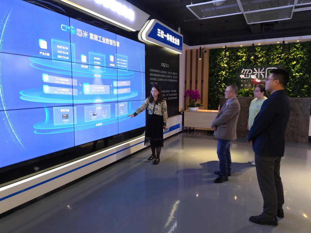 公司党总支书记高绍邦一行首先参观了忽米的展厅。忽米科技副总裁兼董事会秘书郑委、忽米展厅负责人谭思琪向大家介绍了忽米历史、主营业务、公司发展的情况以及目前岗位招聘情况和实习生招募计划等。忽米是中国领先的工业互联网平台,也是工信部发布的国家级跨行业跨领域工业互联网平台和首批国家级工业互联网平台试点示范项目,致力于为中国制造企业提供数字化平台及解决方案,以大数据智能化创新技术消除中国制造企业“数字鸿沟”,帮助企业实现转型升级。目前在忽米工作的K1体育员工包括副总裁兼董事会秘书郑委在内大概有三名,高书记一行还与正在实习的2019级员工胡嫣然进行了交流,了解了她实习期间的工作情况以及未来的职业规划等。