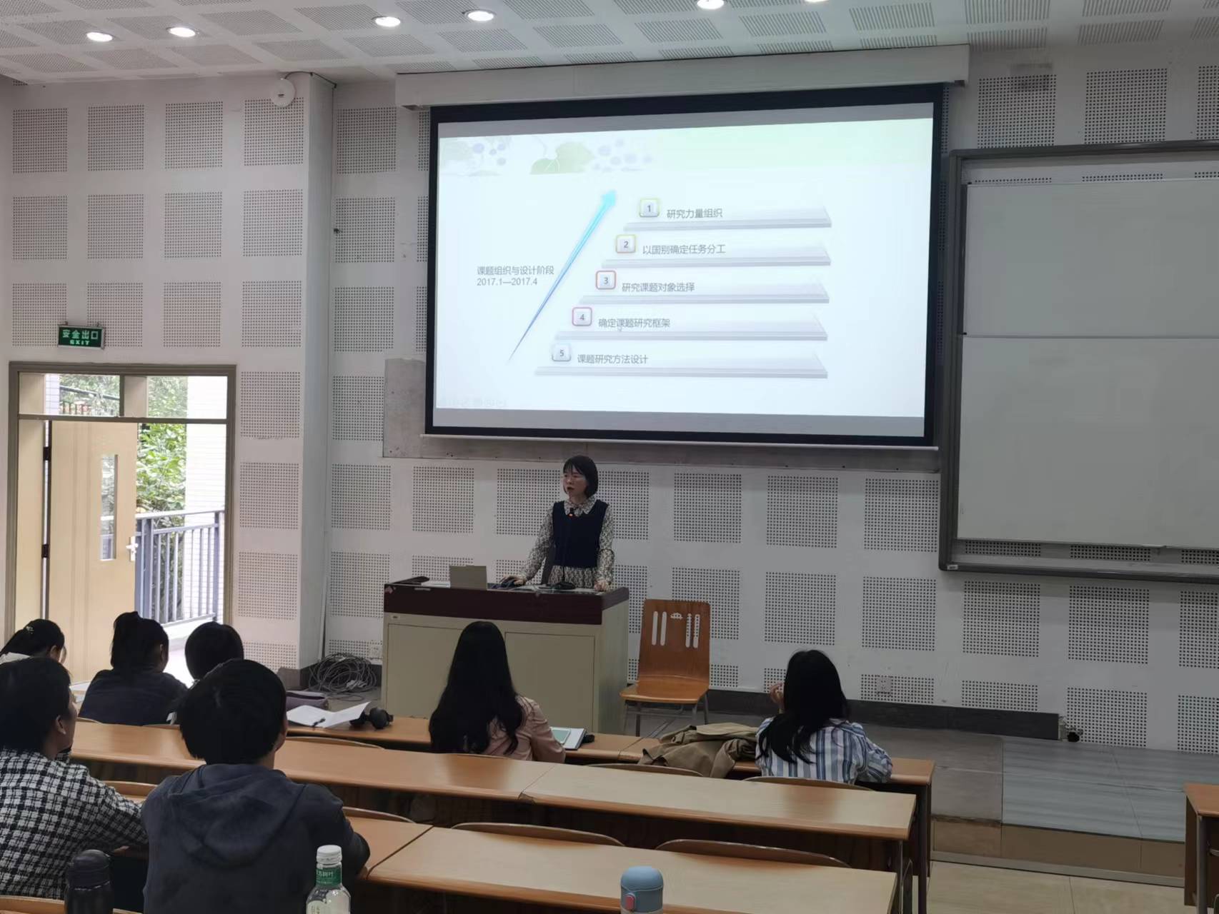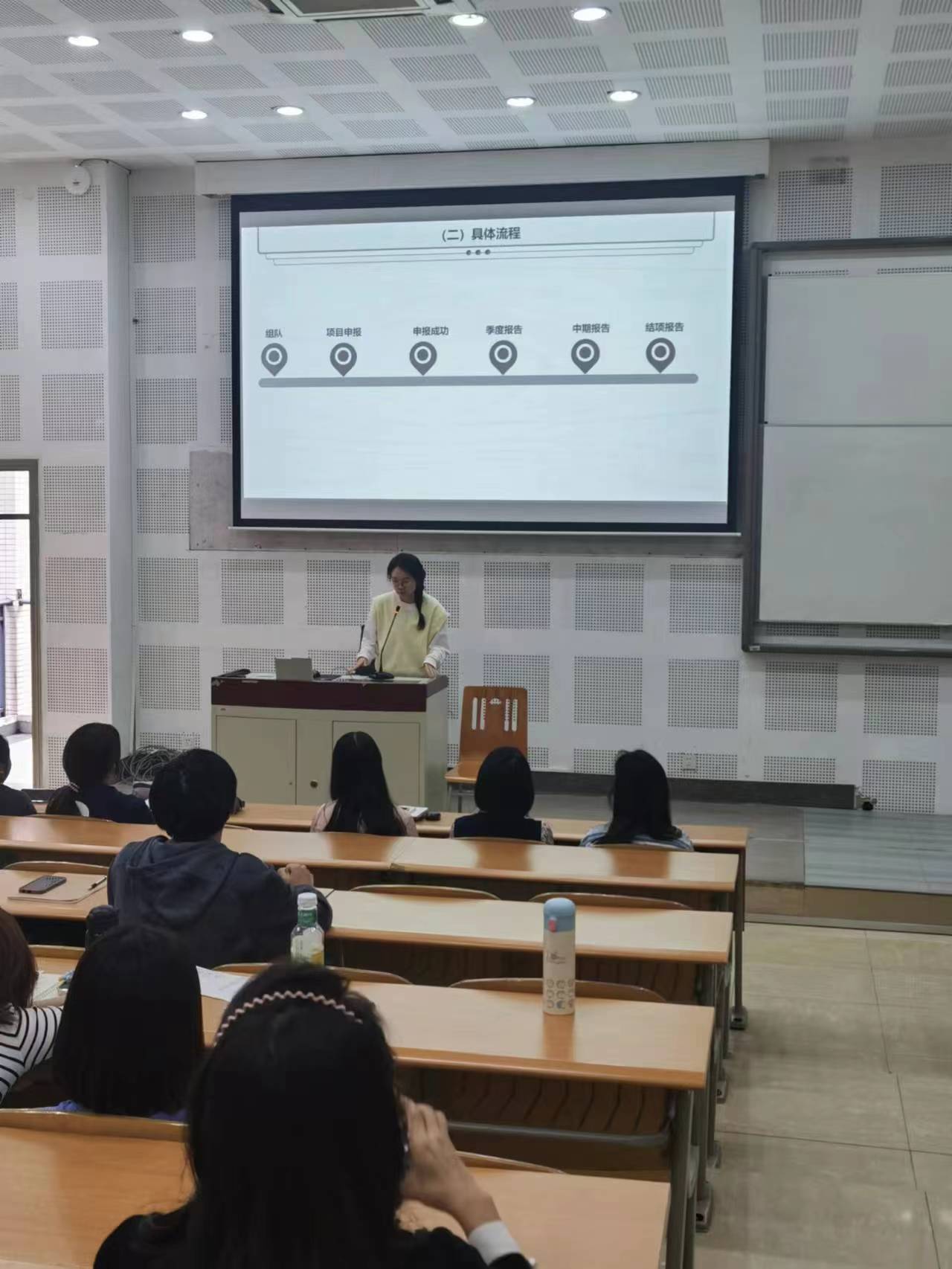 接着,周思邑老师针对老员工创新创业训练计划项目进行了详细介绍。她首先介绍了大创项目的申请与进行过程,鼓励大家要具备积极的态度与持之以恒的决心,主动与老师和同学沟通交流,尽早完成大创项目前期工作。然后,周老师以曾指导过的国家级大创项目为例,向同学们展示了该项目的研究对象、研究方法、进行阶段等内容,丰富多彩的研究成果让现场同学对大创项目有了更加深入的了解。