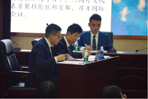 在公布初赛名次后,公司代表队收到了决赛议题。在准备时间短暂,所代表国家实力较弱的情况下,代表队成员们深入研读谈判材料,具有针对性地搜寻相关资料,提前制定谈判策略并草拟协议,积极地为第二天一早的决赛做准备。在决赛赛场上,代表队成员们秉持着“站稳立场,守住底线,积极争取”的理念,一次又一次地为争取国家利益发声。比赛结束后,公司代表队成员以准确的外交表达,扎实的外交知识基础和规范的外交外事礼仪,赢得了在场的评委老师们,主席团和观众的一致好评。