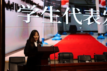 公司纵横学社社长沈俊尹作为员工代表在大赛开幕式上发言