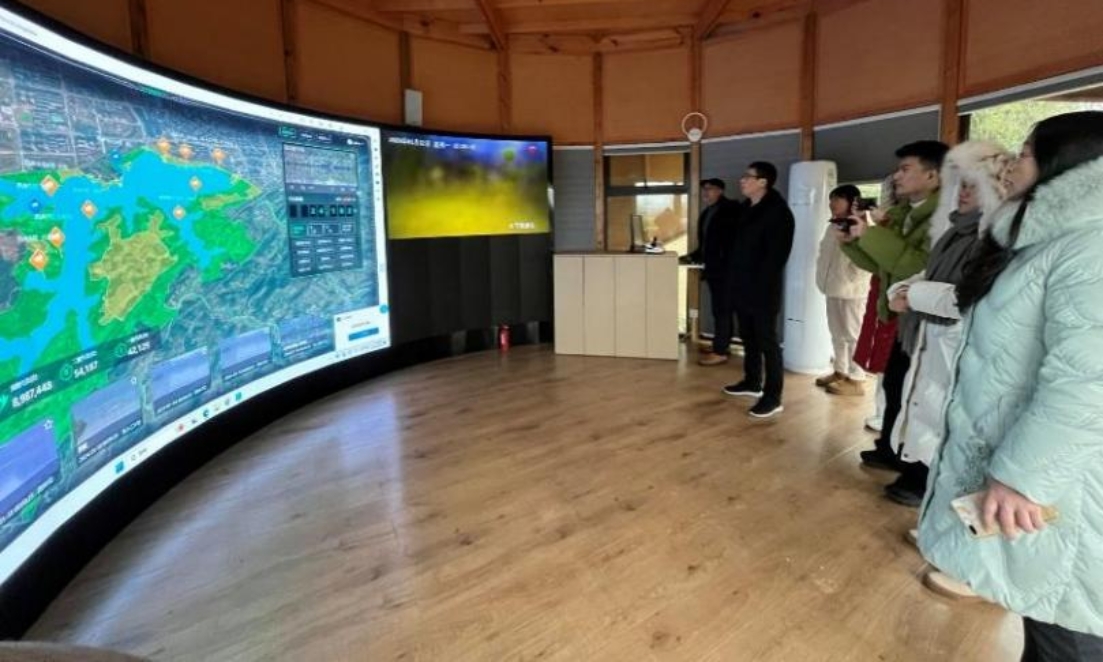 (图为调研小组参观鸟类检测大数据平台)