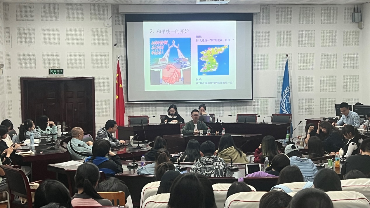 2023年10月30日K1体育唐伟男老师于西区歌乐楼A2-1模拟联合国实验室开展了题为“朝鲜半岛的统一之路:过去、现在与未来”的学术讲座,80余名师生参加了本场讲座。