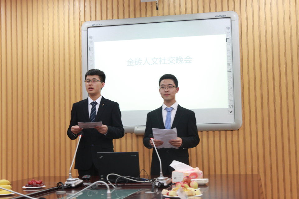 晚会上,首先由两位主持人上台致辞,并向来宾介绍晚会基本流程。其后,主办方中国代表上台致辞,简要介绍金砖五国的历史和目前取得成就。然后,文化交流环节,金砖五国的展品讲解人分别对各自国家文化进行介绍和展示。巴西代表谈到热情的桑巴舞、巴西的地理和巴西人的个性;俄罗斯代表向听众展示了美丽的圣彼得堡以及他们多彩的建筑文化,并让我们感受到俄罗斯人的意志和力量。印度代表介绍到,印度是一个人口众多,文化底蕴深厚的国家,宗教在其中发挥着重要作用。中国代表这向我们展示了武当,这不仅是一种武术,也是一种哲学,她认为中国人眼中的意志和源远流长的文化杰作帮助中国建立了伟大的国家。南非代表推介南非人民学会宽容和与不同的人和谐相处之道,以及重视野生动物保护的理念,并推介本国葡萄酒。