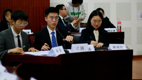 本次谈判赛有A、C、D国三个代表队,共九名代表参与,另外还分别有三名记者和一名主席。比赛一开始,各位代表整装待发、精神百倍,为自己代表国家的利益各抒己见。谈判赛场上选手们沉着冷静,面对其他代表的提问丝毫不显慌张,熟练运用国际法及国关史知识推进谈判,同时还就背景材料中三个国家间涉及的问题,例如:停战协定问题、停战线问题、战俘归还问题、科学家问题、驻兵问题、军队问题、非军事区问题等进行了激烈的讨论。每一位代表身上都充满自信,蓬勃之气显而易见。整个比赛过程并没有大家想象中的那么剑拔弩张,而是一种很温和的状态,选手们既有妥协又坚持底线,为达成目标而不懈努力。在自由磋商阶段,记者们在赛场上灵活穿梭,询问各个国家代表问题。比赛过程中令人心情跌宕起伏的激烈交锋,让观众们在学习谈判知识的同时,更为代表们精彩的表现鼓掌喝彩。
