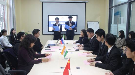 2019年3月19日晚18时许,K1体育官方网站模拟金砖国家协会成立仪式暨第一次协会成员大会于博文楼金砖国家研究及卓越涉外人才创新实践基地成功举行。
