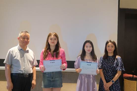 随后,严功军、宋国华、马驭骅、张庆、吴兵、游涵和张国玺为20级国组班获得2021-2022学年卓越奖学金、进步奖学金、雅思优秀奖学金的同学颁奖。严功军和宋国华、张芷珊和曾鹏羽共同切分毕业蛋糕。