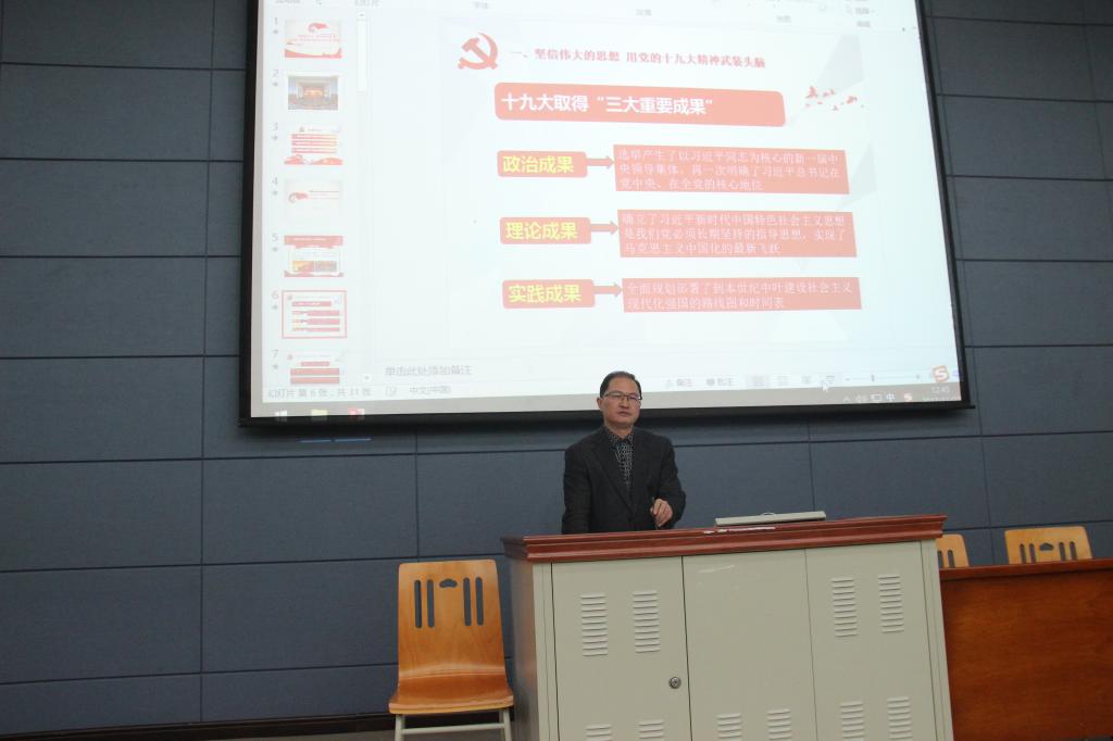 刘书记首先介绍了K1体育官方网站党的十九大精神进校园宣讲队成员名单,并指出本次学习的主题是“拥抱新时代、担当新使命,在实现中国梦的时代舞台上放飞青春梦想”,并呼吁全体师生,在认识学习领悟党的十九大精神之后,要积极行动,将理论知识落实到具体的行动中。接着,刘书记带领大家一起学习了党的十九大取得的“三大重要成果”、“两个一百年”奋斗目标,明确指出我国教育发展取得的历史性成就和所处方位,并进一步说明如何落实优先发展教育事业。刘书记指出,正如党的十九大报告中提到的,青年兴则国家兴,青年强则国家强,青年是国家的未来和希望,他希望广大青年教师和员工能够坚定理想信念,敢于面对矛盾,善于学习党的新理论,并能够理论联系实际,勇于创新,做有理想、有本领、有担当的青年,做时代的弄潮儿,在中国梦的生动实践中放飞梦想。最后,刘书记与在座师生分享了耶鲁大学、哈佛大学等多名教育家关于教育的定义、意义和目的,并呼吁全体教职工不断加强自我修养,提升自我素质,教书育人,做好本职工作;员工要努力学习,掌握学习的方法,努力改变自己的思维方式,积极实践,争做时代的接班人!