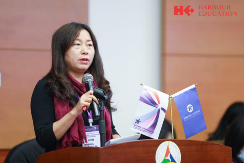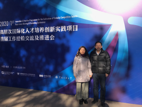 大会分为“形势与政策”、“专题报告”、“圆桌论坛”、“经验分享”、“分组讨论”等几个板块。刘玉梅教授主持了第二组讨论,在闭幕式上进行汇报,并从教育部中外人文交流中心副主任杨晓春手中接过“高层次国际化人才培养创新实践基地”的牌匾。