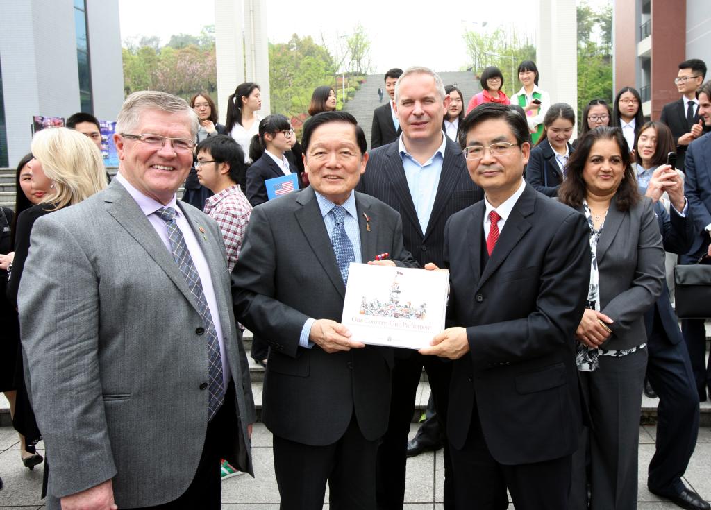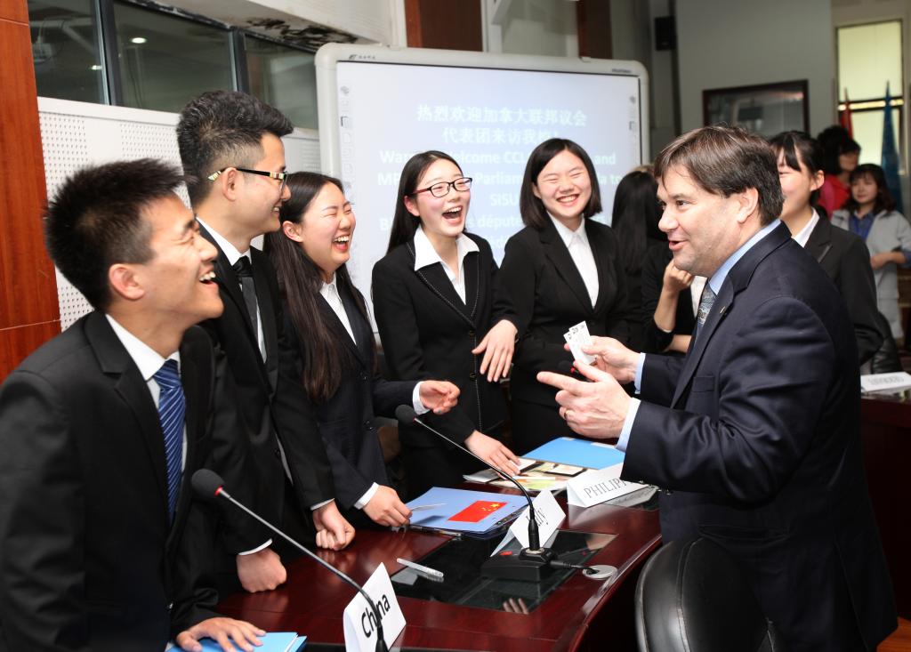 当日中午,公司李克勇董事长与加拿大联邦议会代表团来宾亲切会晤、友好交流,并陪同代表团在公司快乐食间餐厅就餐。就餐期间,代表团与公司员工进行友好交流,深入了解员工的学习和生活。2点左右,代表团进入模拟联合国实验室观摩公司《联合国研究》模拟联合国实验课程。课前,李克勇董事长致辞,热烈欢迎代表团来访。代表团团长胡子修先生及加拿大驻重庆总领事馆总领事欧阳飞先生对公司热情接待表示感谢。