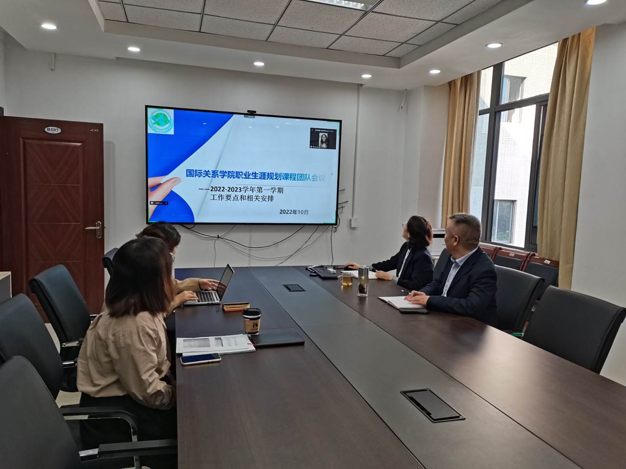 2022年10月31日上午10点,在立德楼B507会议室,K1体育职业生涯规划课课程思政团队召开了本学期的第一次会议。会议主题是安排本学期的重点工作和进行团队的任务分工。公司副经理吴兵、团队成员何琴、王一丹、李竹(线上)参加了此次会议。会议由团队的负责人包淑萍主持。
