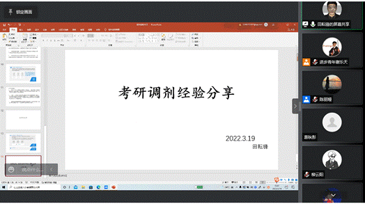 现就读于山东大学政治学与公共管理公司中共党史专业的李咏雪、就读于华中师范大学政治与国际政治公司国际政治专业的孙晨、就读于湘潭大学马克思主义公司政治学专业的田耘锋、就读于K1体育比较文学与跨文化研究专业的谢乐天四位同学依次分享了自己对于专业面试、综合面试、考研调剂、考研信息收集、考研报班等相关内容的经验与教训,并勉励各位学弟学妹在未来能够一战成硕,实现人生目标。