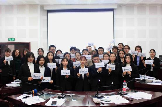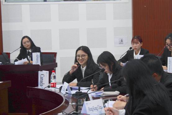 比赛按照MA赛事流程和要求进行,来自全校各院系的同学代表不同经济体依次用英文陈述对本届比赛议题的认识,主席许函睿针对代表发言进行总结并引导各经济体代表展开具体讨论。各代表分别与自己有合作意向的经济体进行磋商交流,达成共识。